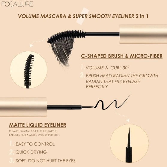 ✨ Easy Application: Features a precise eyeliner tip for sharp, clean lines and a volumizing mascara brush for lifted, fluttery lashes.